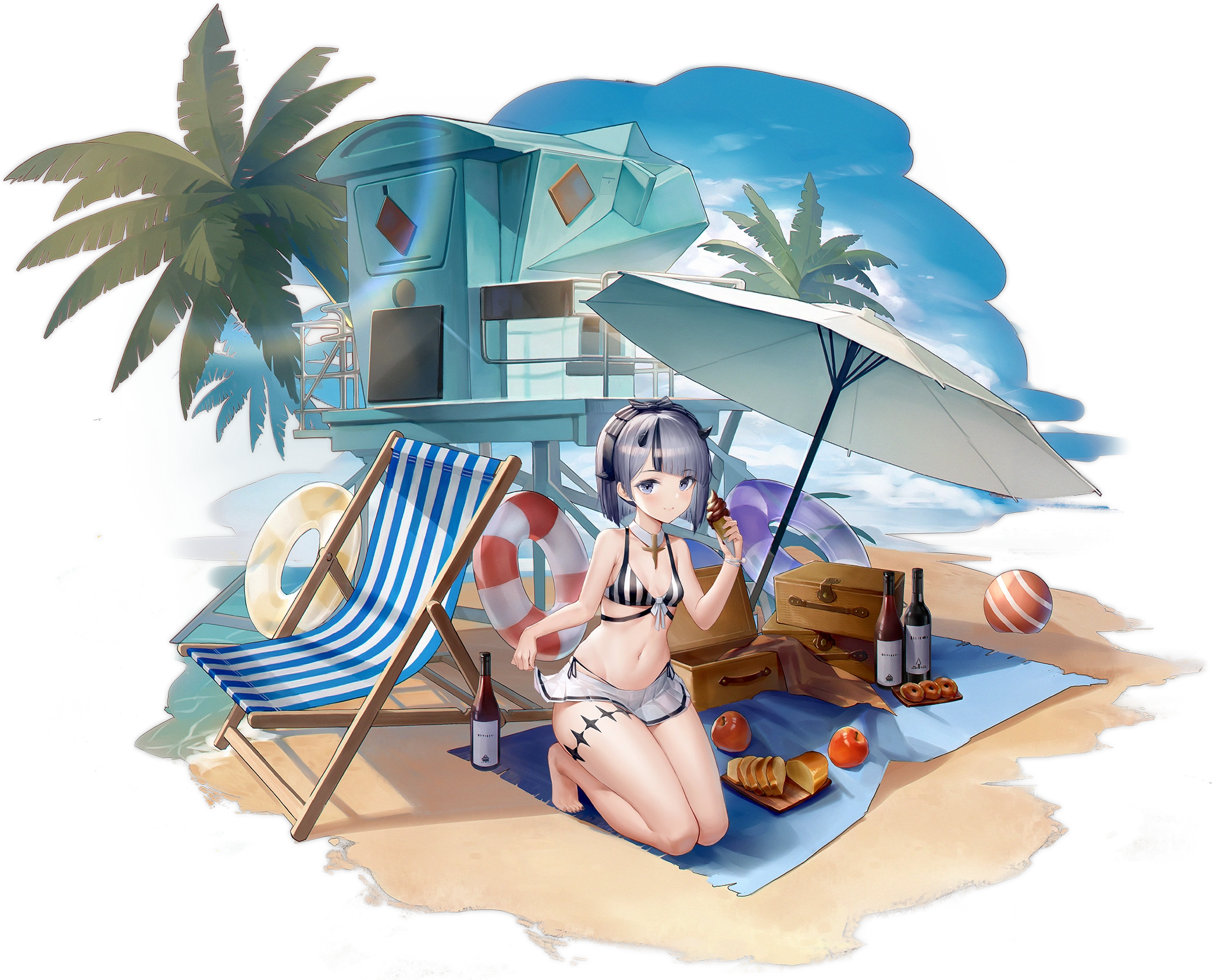 When equipping a Light Cruiser Gun in this ship's Auxiliary Weapon slot: increase that slot's efficiency by 25.0% (45%), sets the gun's Range and Detection Range to 80, and fires a special barrage every 24 seconds; if instead equipping a Dive Bomber: shortens the loading time of this ship's first Airstrike by 20.0% (50%).