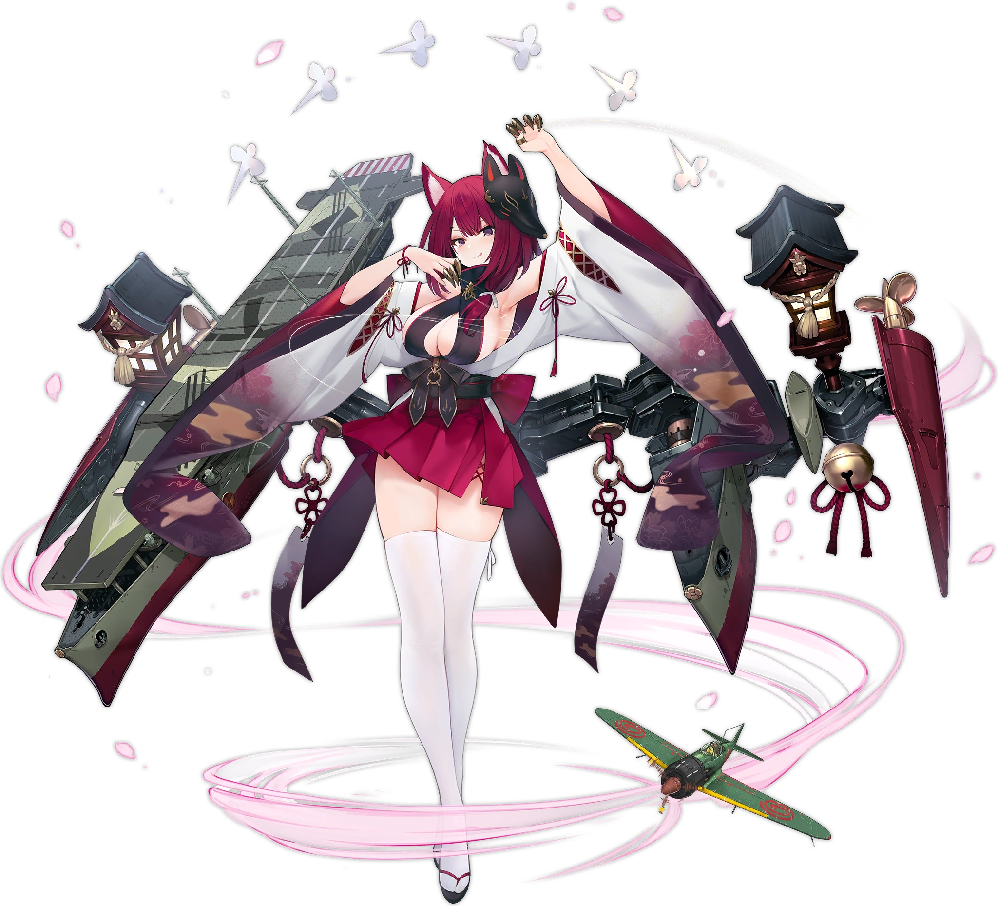 Every battle, when this ship launches its first Airstrike: launches an additional Lv.1 (Lv.10) seaplane airstrike; when it launches is second Airstrike and onwards: 40.0% (70%) chance to launch an additional torpedo bomber airstrike (DMG is based on the skill's level). If there is a Sakura Empire Light Aircraft Carrier in the same fleet as this ship: improves these airstrikes.