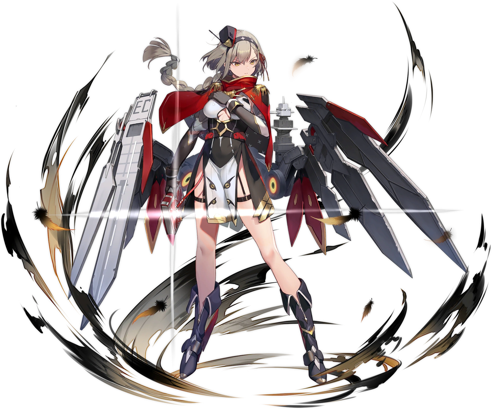 When equipping a CL Gun in this ship's Secondary Weapon slot: increases that slot's efficiency by 25.0% (45%), sets the gun's Range and Detection to 80, and fires a special barrage every 24 seconds; if instead equipping a Dive Bomber: shortens the loading time of this ship's first Airstrike by 20.0% (50%).