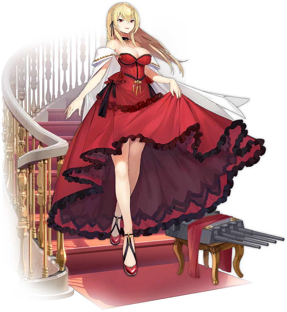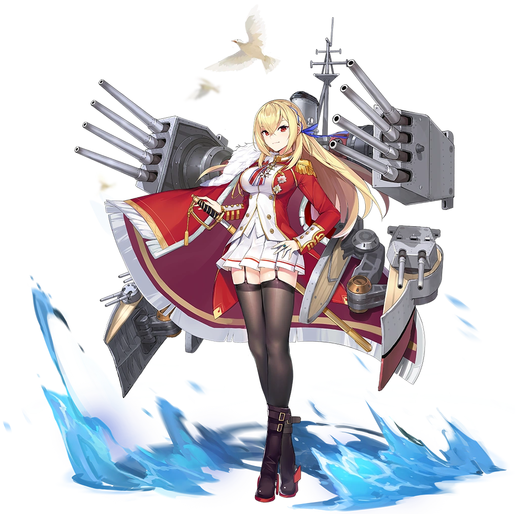 Increase this ship's DMG against Sakura Empire, Ironblood, Sardinia, and Siren ships by 4.0% (10%). When your fleet contains 3 or more Royal Navy ships (excluding this ship): increase this ship's Firepower, Reload, Evasion, and Anti-Air by 4.0% (20%).