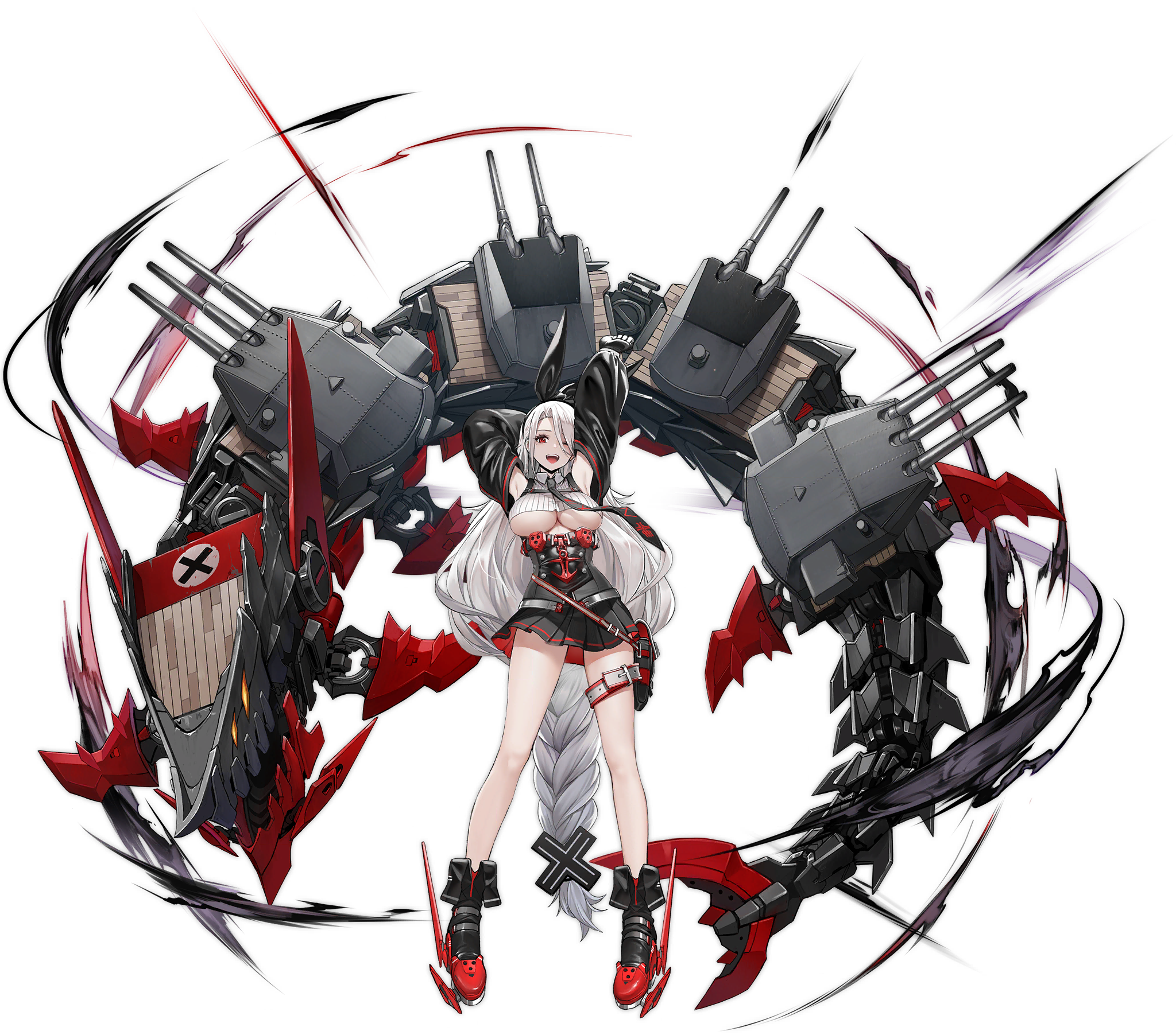 If there is at least 1 other Iron Blood ship in the same fleet: increases this ship's Reload and Evasion by 5.0% (15%). When this ship fires its Main Guns: 20.0% (50%) chance to increase this ship's Main Gun DMG by 25% for 3s (7s cooldown between activations).